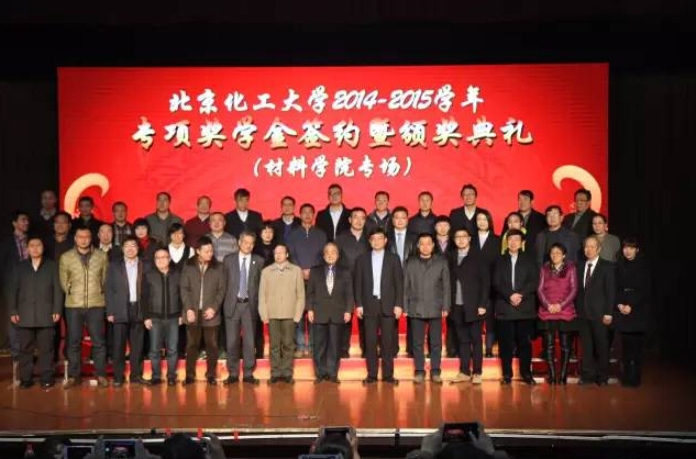 [本刊讯]2015年12月29日,北京化工大学2014-2015学年专项奖学金签约暨颁奖典礼材料学院专场在北京化工大学科学会堂举行,北京化工大学校长助理宋来新等学校领导出席颁奖典礼,上海新星公司市场总监刘竟代表新星公司出席,并与北京化工大学材料学院副院长、接触青年基金获得者于中振教授共同为获得“新星奖学金”的学生颁奖。